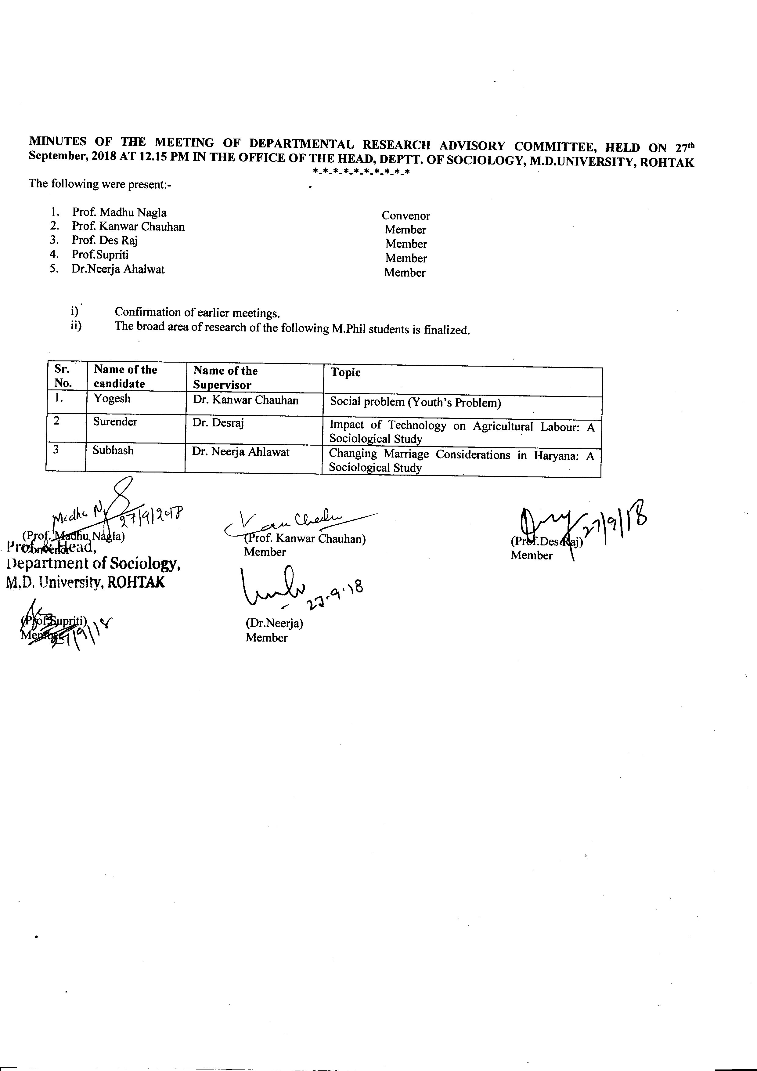 | Prof. Madhu Nagla ( Apr 01, 2016 - Mar 31, 2019 ) |