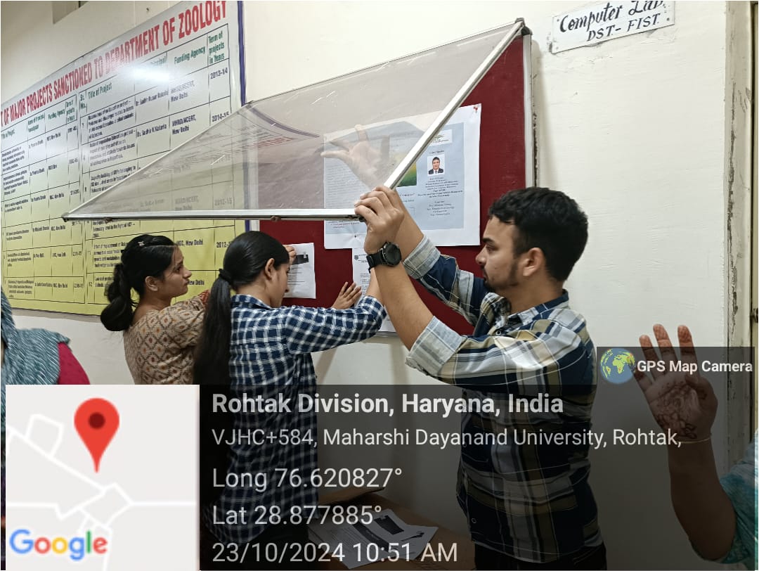 The Department of Zoology came into existence in June 2009. The department has completed 1st Phase of DST-FIST program. The Department offers Post Graduate Course in the subject of Zoology and PhD programme in different areas of specialisation in the latest research areas of life sciences as well as considering social problems. The department has research collaboration in the interdisciplinary research areas with institutes like IGIB, N. Delhi, NII, N. Delhi, NMRI, N. Delhi, PtBDSUHS/PGIMS, Rohtak, Kurukshetra University, Kurukshetra apart from interdepartmental research collaboration. The faculty has more than 200 research publication with an impact factor of 48 (TR), 12 Book Chapters, 06 books, and 06 proceedings of national seminar/conference with ISBN to their credit. The Department has successfully organized 07 National Seminars/Conferences since its inception. The department is actively engaged in research activities and successfully competed several research projects funded by UGC, DST, etc and is equipped with sophisticated instruments like HPLC, Lyophilizer, Gel Documentation system, PCR, Autoclave, UV-VIS Spectrophotometer, Potentiostat, Upright and Inverted Microscope, Deep refrigerator (-86˚C), Biosafety Cabinet etc. The faculty members of the Department are actively engaged in teaching and research to cater the need of the students and society.